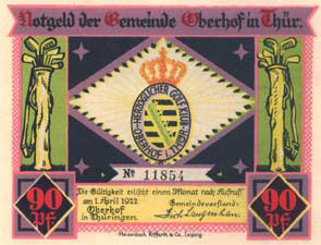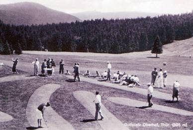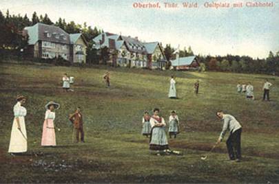 Auch in Oberhof waren die Zeiten der Inflation und Wirtschaftskrise schwierig. Papier-Notgeld wurde als Ersatzwährung herausgegeben. Eigene Motive, wie auch in jeder anderen Gemeinde Deutschlands, wurden kreiert. Gemeinderatsmitglied Dr. med. Curt Weidhaas und Schultheiss / Bürgermeister Richard Langenhan entschieden gemeinsam über die Themen für die künstlerischen Entwürfe. Man brauchte nicht lange nachzudenken, Wintersport und Golf bestimmten das Bild, das man in Thüringen, ja in ganz Deutschland von Oberhof hatte. Nur Oberhof hat dem Golfsport ein solches Denkmal gesetzt. |