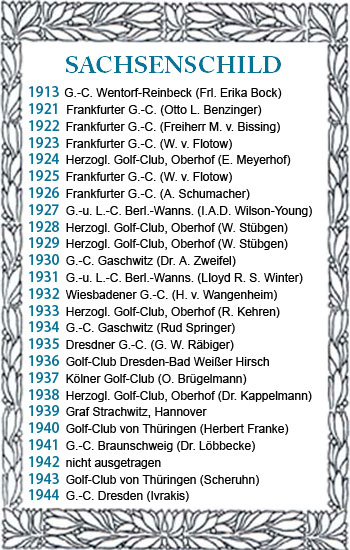 1. Der von seiner königlichen Hoheit des Herzog Carl Eduard von Sachsen Coburg und Gotha dem Herzoglichen Golf-Club Oberhof i. Thür. verliehene Wanderpreis: "Sachsenschild" wird alljährlich auf den Golffeldern des Herzoglichen Golf-Clubs zu Oberhof i. Thür. ausgespielt.